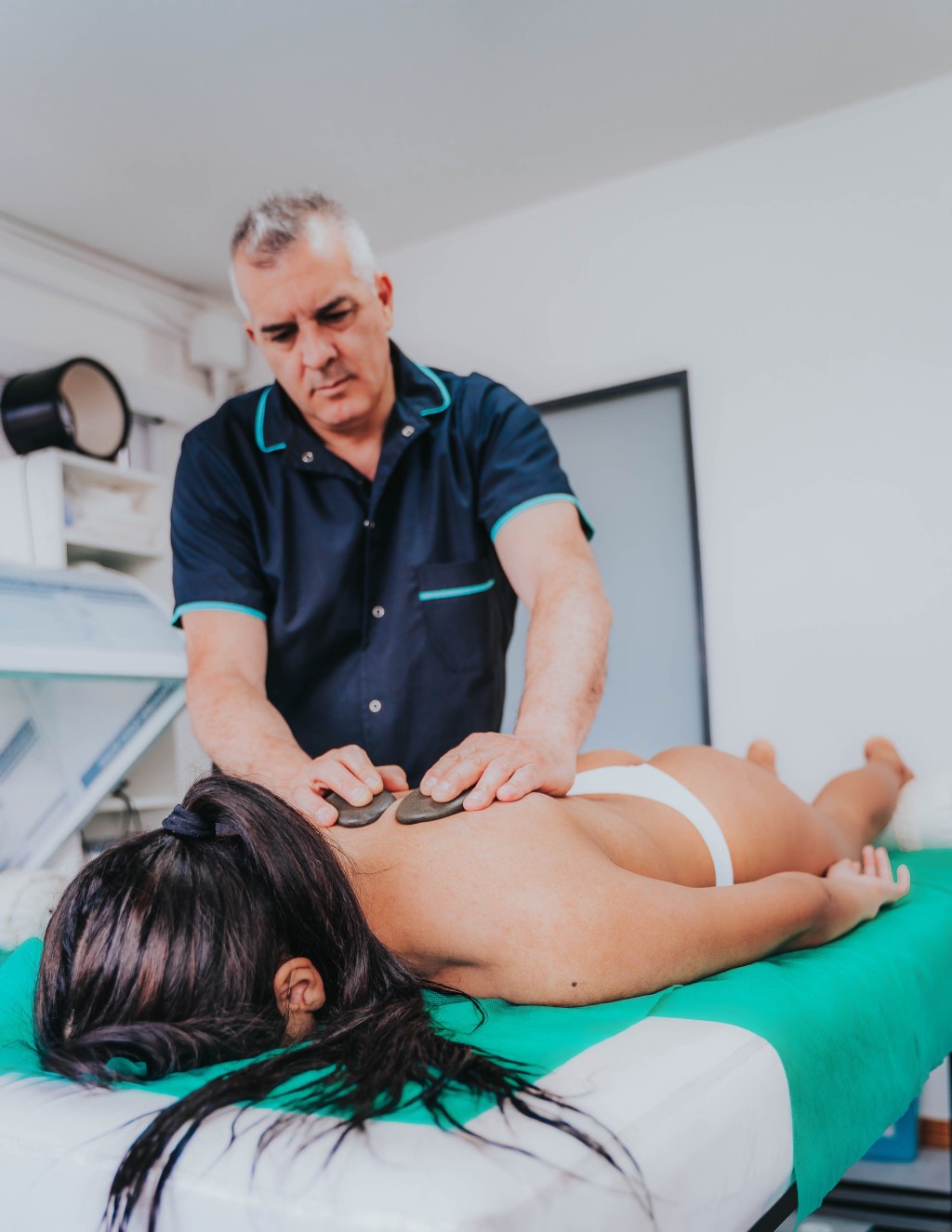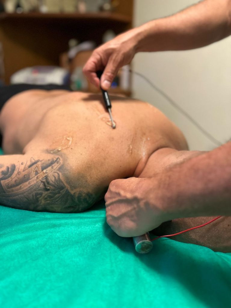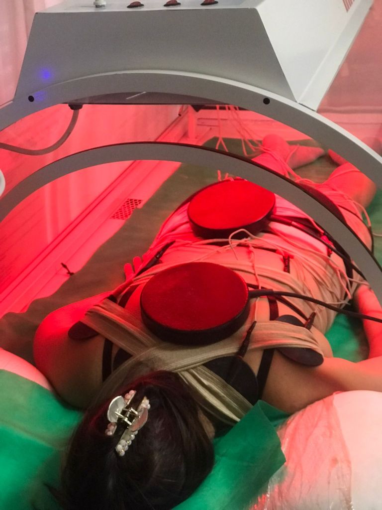 (electroterapia combinada con diferentes ondas, infrarrojo, cromoterapia, cama vibratoria linfatica y magnetoterapia) en el caso de contracturas muy profundas y de años se aplica electropuntura.